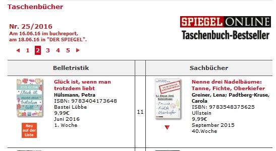 Gerade habe ich es schon auf meiner Facebook-Seite gepostet (Petra Hülsmann FB), aber für alle, die kein Facebook haben, verbreite ich die tolle Nachricht auch hier: Sensation! „Glück ist, wenn man trotzdem liebt“ steigt diese Woche auf Platz 11 in der Spiegel Online Taschenbuch-Bestsellerliste ein! Ist das nicht der Hammer?! Vielen, vielen Dank an…